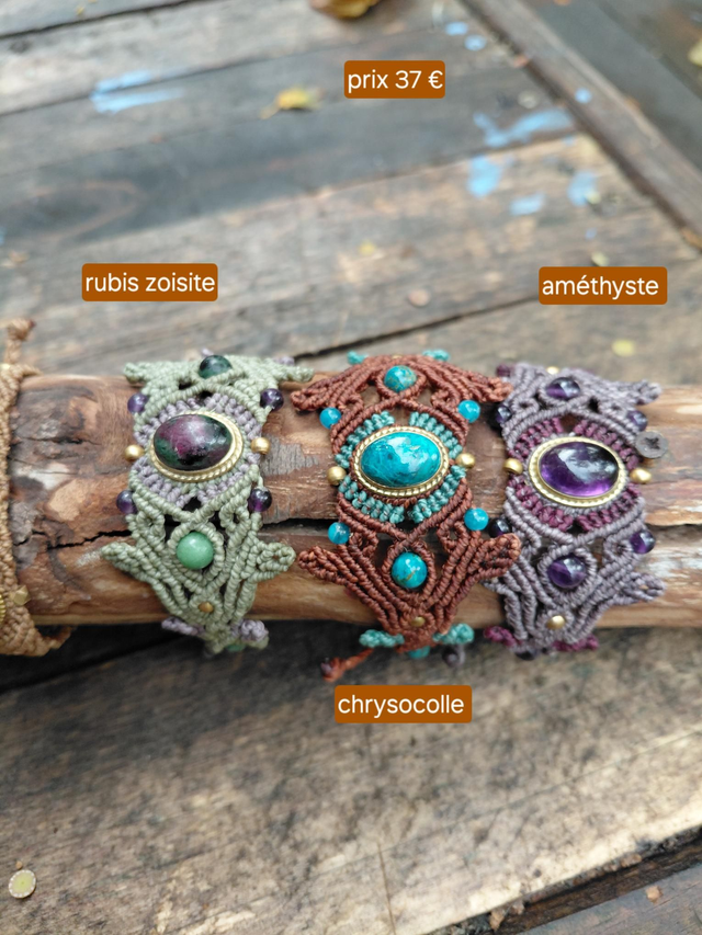 Les pierres oeuvent évoluer en fonction du stock. Le bracelet se règle avec un noeud coulissant.