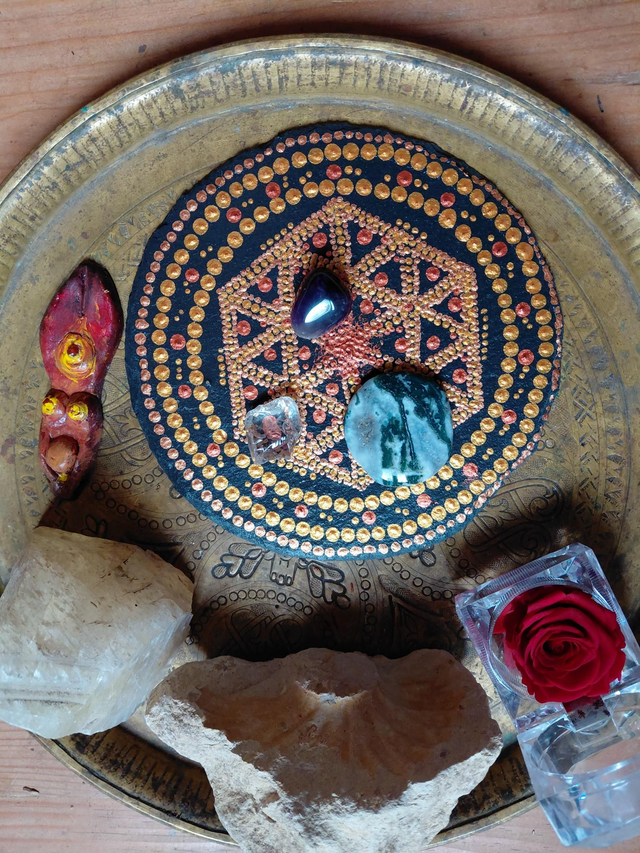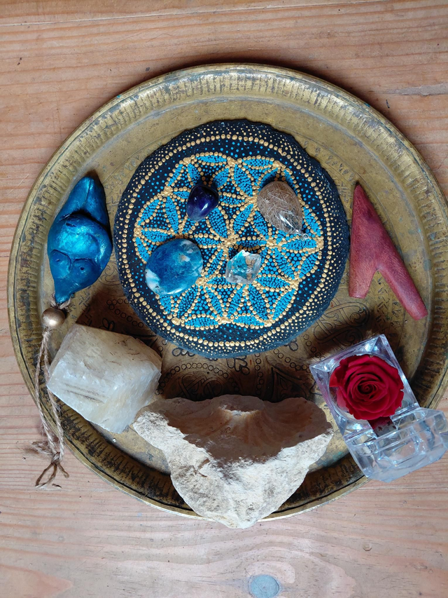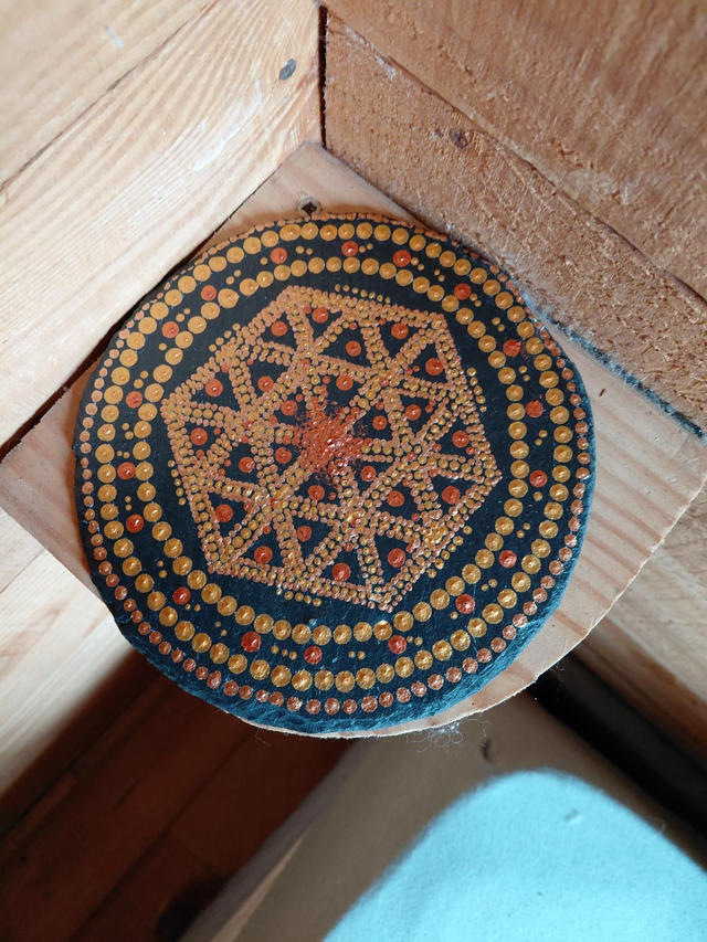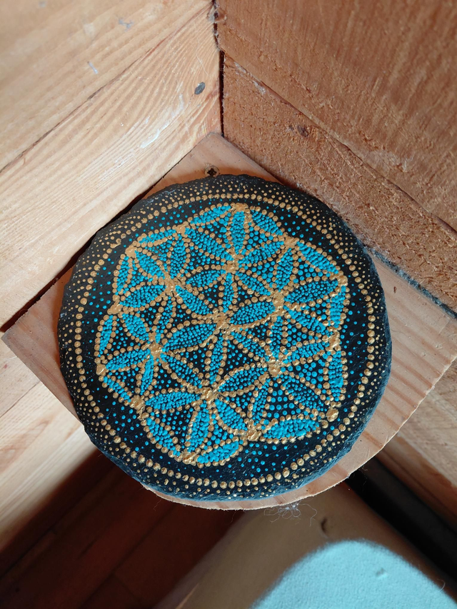 Fleurs de vie peint à la main sur une ardoise de 15 cm de diamètre