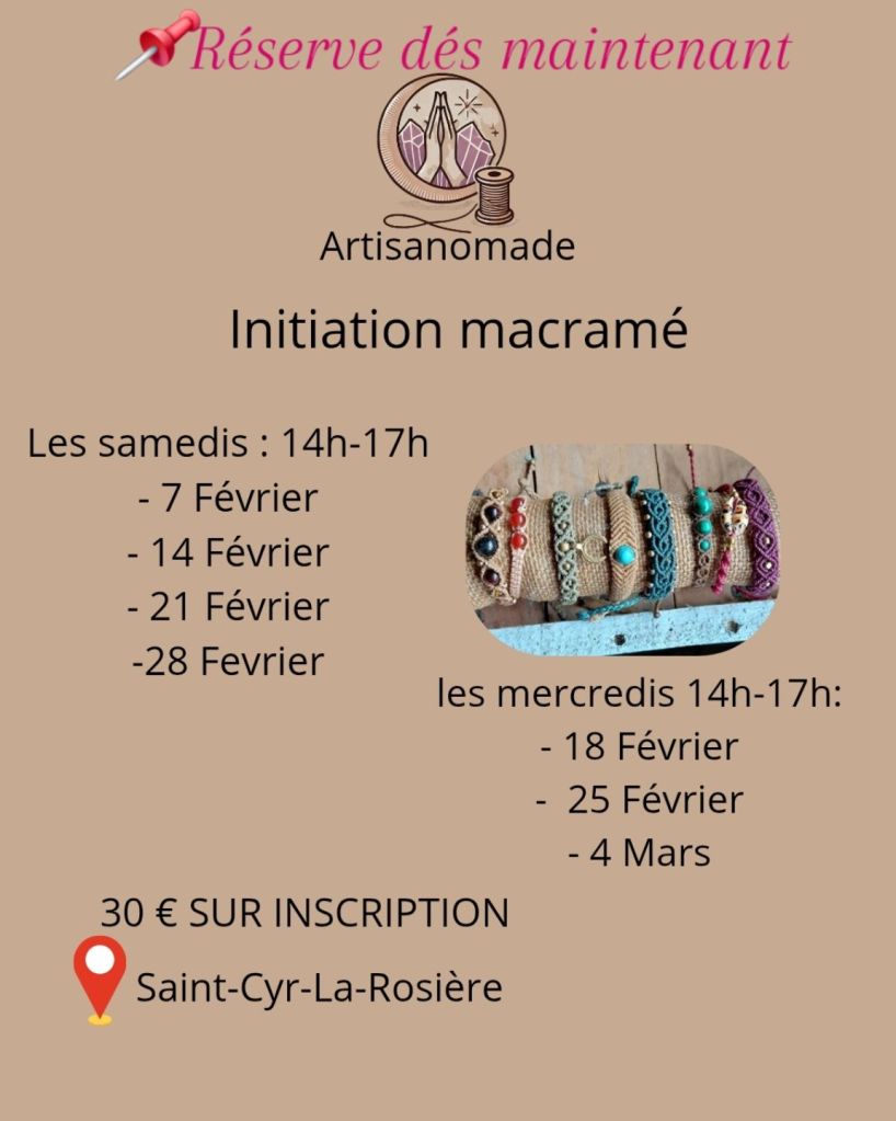 • Tous les samedis de 14h à 17h: initiation macramé